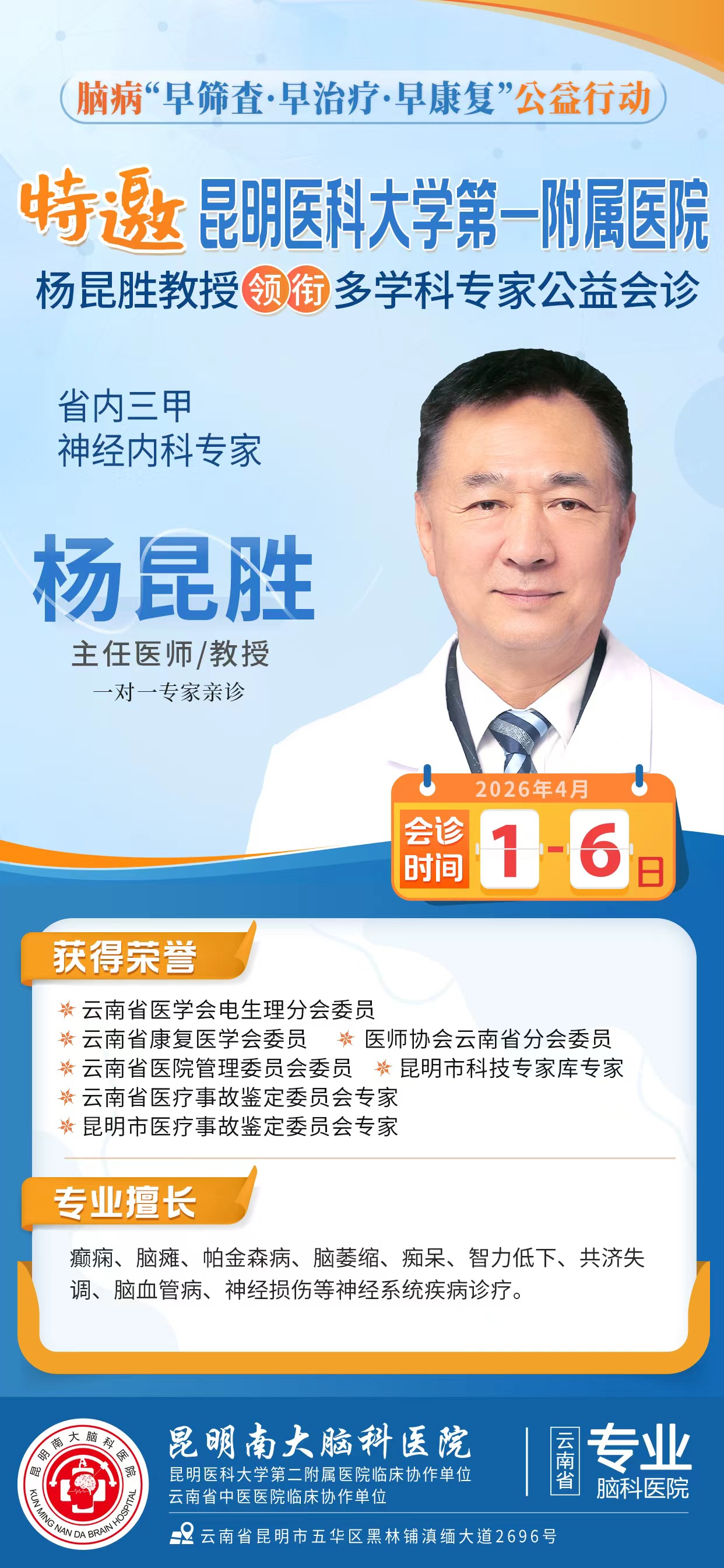 预约挂号 >昆明医科大学第一附属医院 杨昆胜 教授
