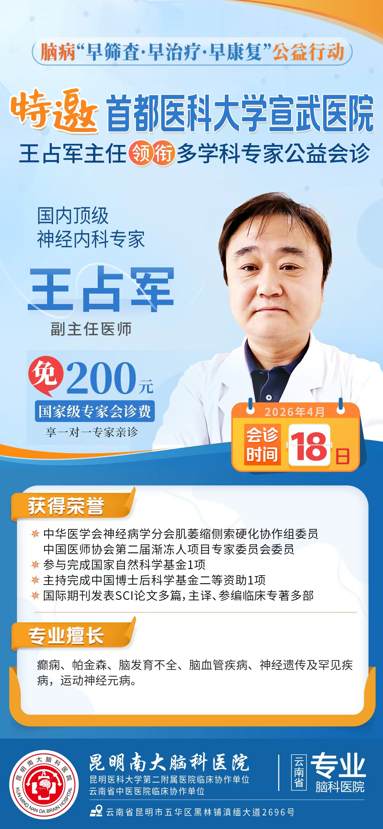 擅长:癫痫、脑瘫、帕金森病、脑萎缩、痴呆、智力低下